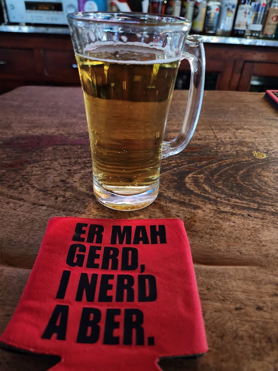 Ahhhhhh I'm indifferent place crawling with bears fans but it balances out thanks to the drinks being served in glasses from the Oregon trail/little house on the prairie!! No tape on location if say your state issued ID is broken in 2!!